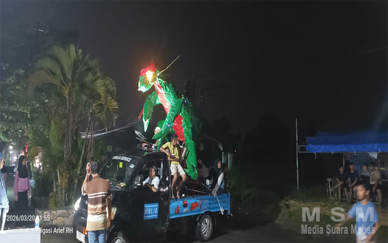 Gema takbir berkumandang diiringi tabuhan bedug, dengan arak-arakan yang diisi oleh kalangan pemuda dan anak-anak dengan penuh antusias. Mereka menggunakan berbagai perlengkapan seperti kendaraan hias, obor, ogoh-ogoh, sound sistem, hingga pesta kembang api yang semakin memperkaya suasana meriah.