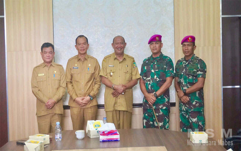 Letkol Mar Suherman memperkenalkan diri kepada Plt. Bupati Langkat dimana beliau yang baru dilantik menjadi Danyon Marinir 8 Harimau Putih.