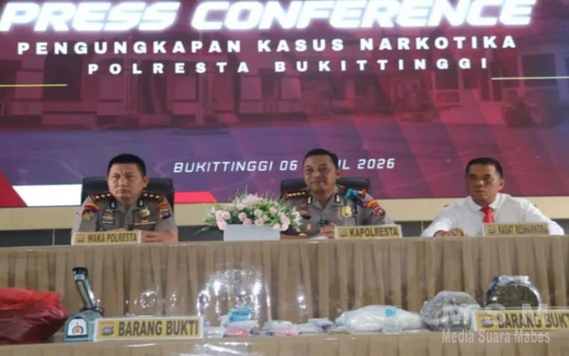 MediaSuaraMabes, Bukittinggi – Keberhasilan gemilang diraih oleh jajaran Polresta Bukittinggi yang berhasil meringkus seorang bandar narkoba berinisial DN (29) di kawasan Baso, pada Sabtu (4/4/2026). Pelaku yang berdomisili di wilayah Bukittinggi ini telah menggelar bisnis haramannya selama kurang lebih enam bulan, sebelum akhirnya terjerat hukum.