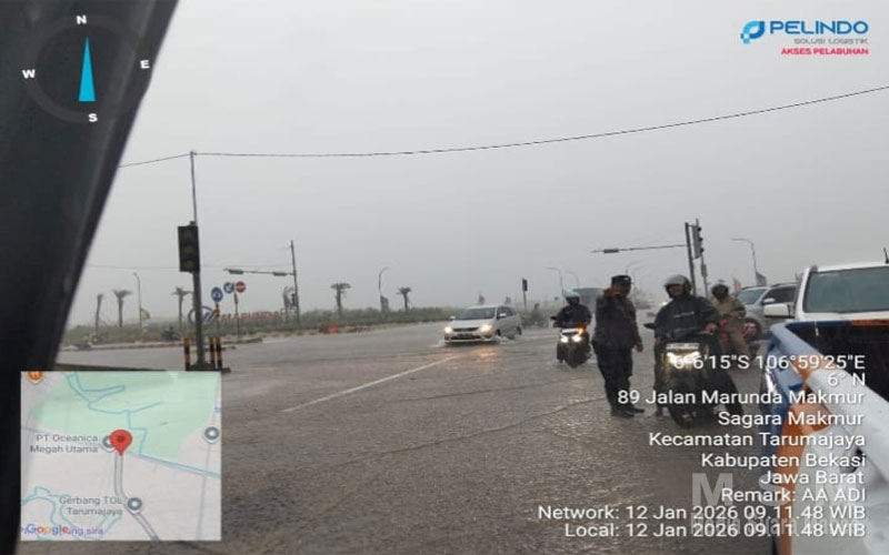 Bertempat di depan pintu gerbang Tol Tarumajaya, Aipda Arif Pramono terlihat mengarahkan dan menuntun warga serta pengendara yang terjebak banjir agar dapat melintas dengan aman. Tanpa menghiraukan derasnya hujan dan kondisi jalan yang tergenang, ia tetap menjalankan tugas demi kelancaran dan keselamatan masyarakat.