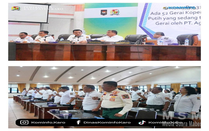 MediaSuaraMabes, Karo – Bupati Karo, Brigjen Pol (Purn) Dr. dr. Antonius Ginting, Sp.OG., M.Kes., didampingi Wakil Bupati Karo, Komando Tarigan, SP., Sekretaris Daerah Kab.Karo, Gelora Kurnia Putra Ginting, S.STP., MM., Para Asisten, serta Inspektur Kab.Karo memimpin Rapat Evaluasi Kinerja Perangkat Daerah yang dilaksanakan di Aula Rakoetta Brahmana (Aula Kantor Bupati Karo), pada Rabu (4/2/2026). Turut dihadiri Oleh Para Kepala OPD dan Para Camat se-Kabupaten Karo.