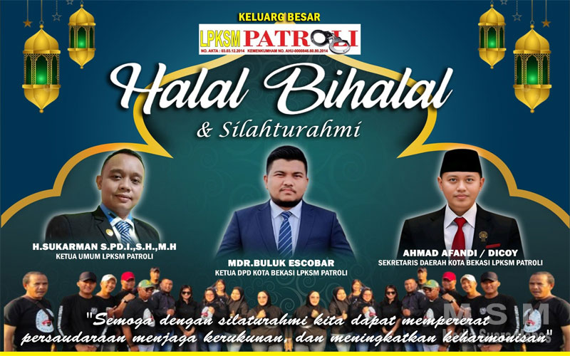 MediaSuaraMabes, Bekasi — Dalam rangka mempererat tali silaturahmi pasca Hari Raya Idulfitri 1447 Hijriah, pengurus LPKSM PATROLI DPD Kota Bekasi menggelar kegiatan Halalbihalal pada Sabtu (18/04/2026) pukul 15.00 WIB, bertempat di Hotel Monolog Blue Plaza, Kota Bekasi.