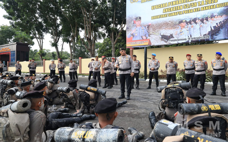 MediaSuaraMabes, Babel – Kapolda Kepulauan Bangka Belitung, Irjen Pol. Viktor T. Sihombing, berikan arahan khusus kepada 53 Bintara Remaja angkatan 53/58 Direktorat Samapta Polda Babel. Arahan ini disampaikan dalam rangkaian upacara Hari Kesadaran Nasional yang dirangkaikan dengan tradisi pembaretan dan pemberian penghargaan bagi personel berprestasi di halaman Mapolda Babel, Rabu (18/02/26) pagi.