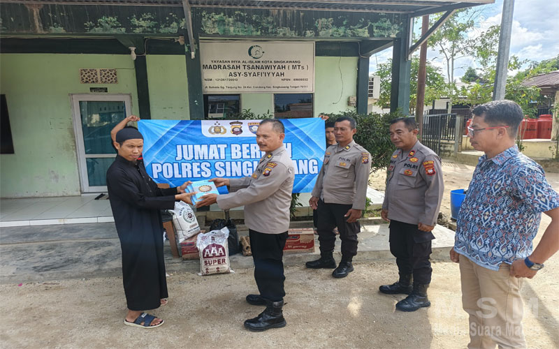 MediaSuaraMabes, Singkawang Kalbar – Polres Singkawang kembali menunjukkan kepedulian terhadap masyarakat melalui kegiatan Jum’at Berkah dengan menyalurkan bantuan sosial ke Pondok Pesantren Asy-Syafi’iyyah di Kelurahan Condong, Kecamatan Singkawang Tengah. Kegiatan berlangsung pada Jumat (5/12/2025) sekitar pukul 14.30 WIB dan berjalan penuh kehangatan serta kebersamaan.