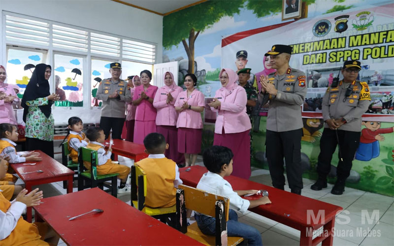 Selain meresmikan SPPG Polri, Kapolda dan rombongan turut memantau langsung pendistribusian MBG ini di TK Bhayangkari Kota Pangkalpinang. (edi Babel74).
