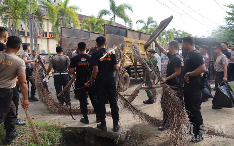 “ kegiatan bersih bersih area taman kota pada pagi hari ini merupakan tindak lanjut dari Program ASRI yang dicanangkan oleh Presiden Indonesia. Kegiatan kita mulai dengan pelaksanaan apel bersama yang dilanjutkan dengan membersihkan area gorong gorong, tumpukan sampah, rumput yang sudah Semak serta sisa bahan kemasan makanan yang masih ditemukan berserakan di area taman. Sesuai arahan dari Bapak Kapolres, Kegiatan ini akan berlanjut kedepannya dan terjadwal setiap minggunya ” Ucap IPTU Niptah, Jumat (06/03/2026) Pukul 08.00 Wib.