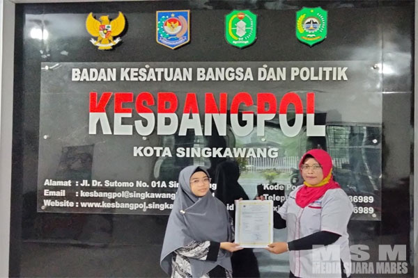MSM TV, Singkawang – Kalimantan Barat Ketua Ikatan Wartawan Online Indonesia (IWO INDONESIA) DPD Singkawang menyerahkan surat keterangan tanda terdaftarnya Ikatan Wartawan Online Indonesia di Kesbangpol, dalam Penyerahan, Surat Keterangan Terdaftar tersebut yang diserahkan oleh ketua DPD IWO INDONESIA ‘Sukesih kepada salah satu Staff petugas Kesbangpol Kabupaten Kota singkawang, yaitu” Widiya Wati, S.A.P, Analis Jabatan, Sekretariat Badan Kesatuan Bangsa dan Politik, Kota singkawang. kamis (07/04/2023)