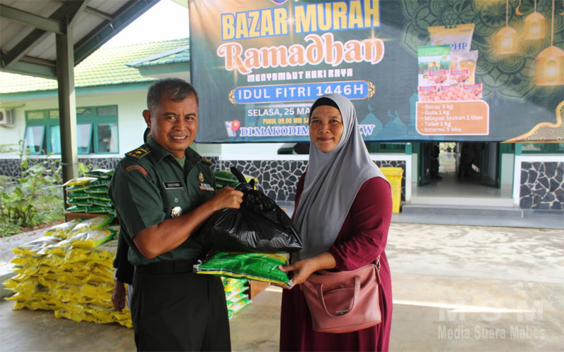 MSM TV (Jaringan MSM), Singkawang – Kodim 1202/Singkawang menggelar bazar murah yang disambut antusias oleh masyarakat. Dalam kegiatan ini, warga cukup membayar Rp110.000 untuk mendapatkan paket sembako murah berisi 5 kg beras, 1kg Minyak Makan, 1kg gula, 1kg telur ayam, dan 5 bungkus mie instan. Kegiatan ini berlangsung di Makodim 1202/Singkawang, Jl. Alianyang, Kel. Pasiran, Kec. Singkawang Barat, Kota Singkawang. Selasa,(25/03/2025).