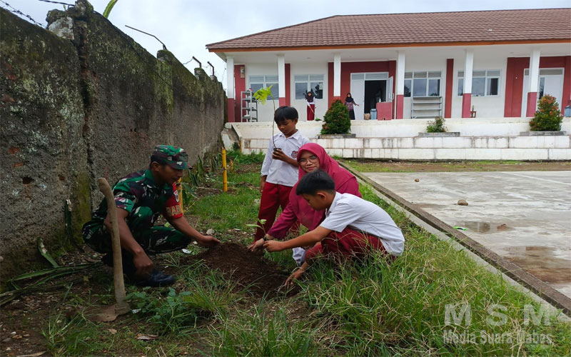 MSM TV (MSM Network), Sukabumi – Dalam Masa penghijauan untuk Taman Sekolah, Koramil Parungkuda bekerjasama dengan kepala sekolah SD Negeri Kerenceng agar suasana perindangan bisa dinikmati siswa-siswi di akan datang.