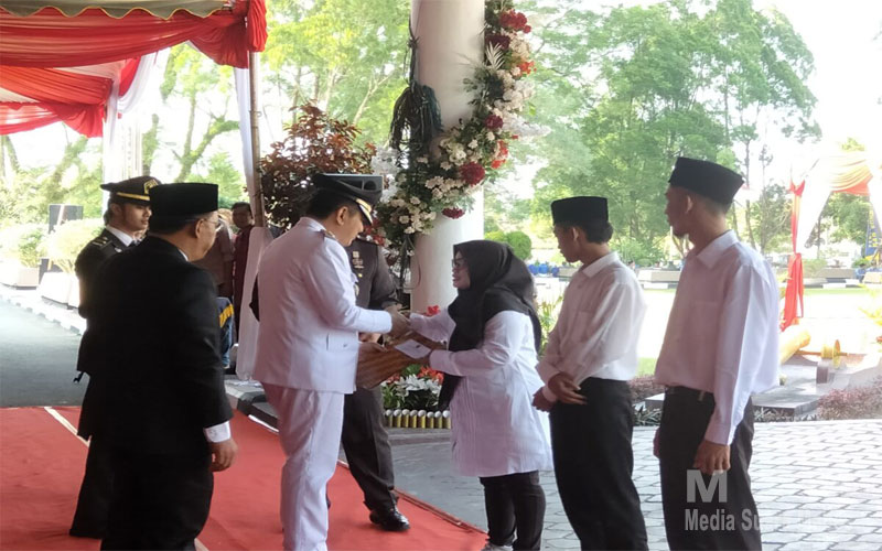 Penyerahan surat keputusan tentang remisi ini secara simbolis diserahkan Pj. Bupati Kotawaringin Barat Budi Santosa kepada perwakilan 3 orang WBP usai peringatan HUT Republik Indonesia Ke 79 di kantor Bupati Kobar, Sabtu (17/8).