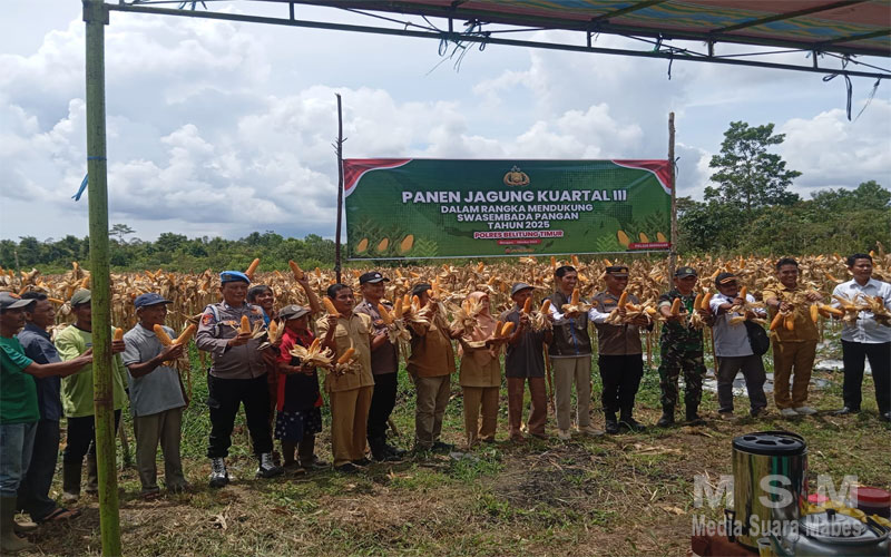 MediaSuaraMabes, Babel – Kegiatan Panen Jagung Serentak Kuartal III Tahun 2025 sukses digelar di lahan Kelompok Tani (Poktan) Makmur Barokah, Desa Kelubi, Kecamatan Manggar, Kabupaten Belitung Timur, pada Senin (20/10). Kegiatan ini merupakan bukti nyata kontribusi sektor pertanian dalam memperkuat ketahanan pangan daerah.
