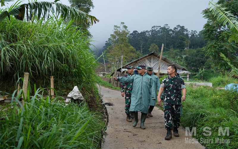 MediaSuaraMabes, Bandung Barat – Pangdam III/Siliwangi, Mayjen TNI Kosasih, S.E., meninjau langsung lokasi bencana alam tanah longsor di Kampung Pasir Kuning RT 05 RW 11, Desa Pasirlangu, Kecamatan Cisarua, Kabupaten Bandung Barat, Sabtu (24/1/2026). Kunjungan tersebut dilakukan sebagai bentuk kepedulian dan tanggung jawab TNI dalam membantu penanganan bencana serta memastikan proses evakuasi berjalan optimal.