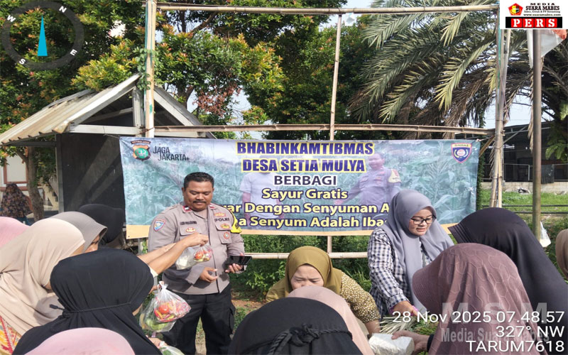 MediaSuaraMabes, Bekasi – Senyuman warga tampak menghiasi wilayah kampung pomahan bulak RT 02 RW 18, Dusun 03, Desa Setiamulya, pada Jumat pagi. Babinkamtibmas Desa Setiamulya, Aipda Arif Pramono, kembali menggelar kegiatan “Pasar Jimpul Keliling Pak Babin”, sebuah program berbagi sayur mayur gratis kepada masyarakat.