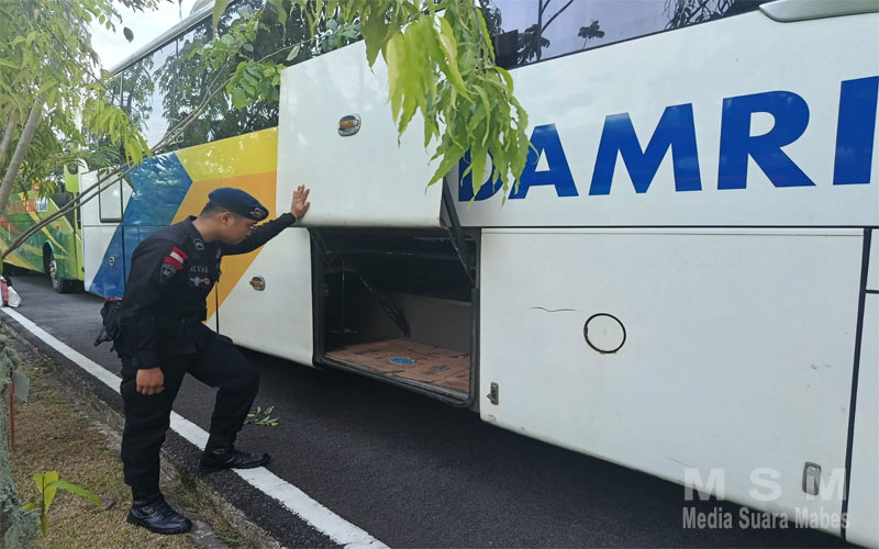 “​Pemeriksaan mendetail meliputi area kolong bus, ruang bagasi, kabin pengemudi, deretan kursi penumpang, hingga fasilitas toilet. Dengan menggunakan peralatan deteksi khusus, petugas memastikan tidak ada benda mencurigakan, bahan peledak, maupun paparan material berbahaya lainnya.” Ungkap Robertus.