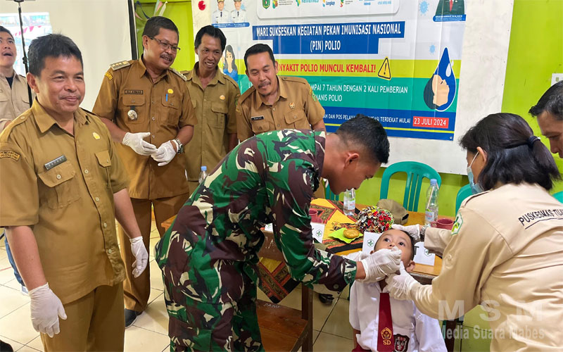 MSM TV, Bengkayang – Babinsa Kodim 1209-02/Sgl ikut sukseskan Pelaksanaan Pekan Imunisasi Nasional (PIN) Polio tahun 2024, dalam rangka Pencegahan dan Penanggulangan Penyakit Polio di Kabupaten Bengkayang tahun 2024 di SD 05 Taum Desa Sinar tebudak Kec.Tujuh belas Kab. Bengkayang. Rabu(24/7/24).
