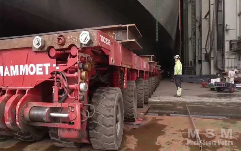 Proses peluncuran ini menandai tonggak baru dalam industri perkapalan, berkat penerapan metode inovatif yang melibatkan transporter modular bertenaga sendiri (SPMT).