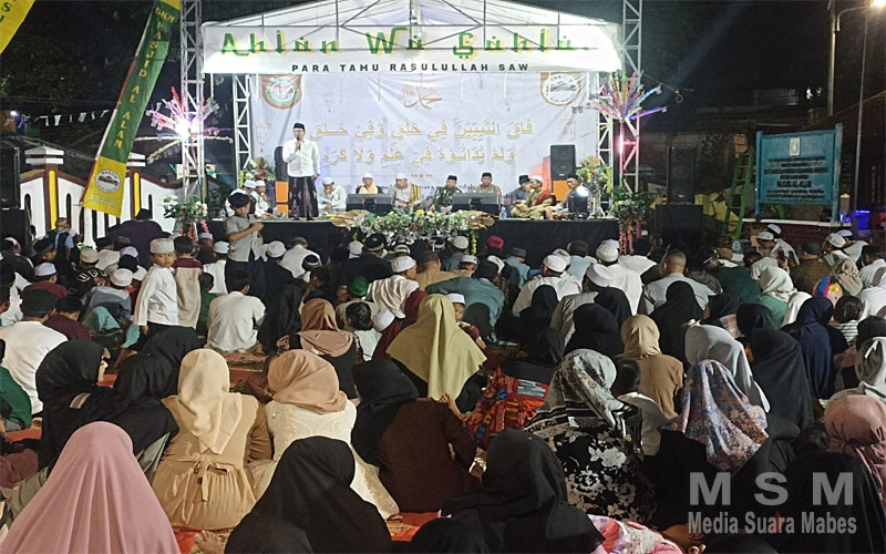 MediaSuaraMabes, Jakarta – Peringatan Maulid Nabi Muhammad SAW 1447 H / 2025 M digelar dengan penuh khidmat dan semarak di halaman Masjid Al-Alam, Marunda, Cilincing, Jakarta Utara. Acara yang dimulai pukul 20.00 WIB ini mengangkat tema besar “Beliau melampaui para nabi terdahulu, baik ketampanannya maupun akhlak budi pekertinya. Para nabi terdahulu takkan menyamai Rasulullah SAW dalam ilmu dan kemuliaannya.”