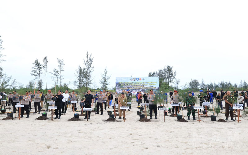 Dari pantauan, penanaman yang dilakukan Polda Babel ini dipusatkan di Kawasan Pantai Lintas Timur Desa Air Anyir Kabupaten Bangka.