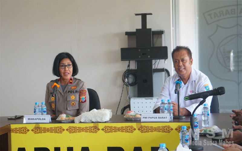 Dalam kunjungan tersebut, rombongan PMI Provinsi Papua Barat dan Dinas Kesehatan Provinsi Papua Barat disambut oleh Wakapolda Papua Barat Brigjen Pol Dr. Sulastiana, M.Si., CRGP., CHCM., CRPP., Dir Binmas Polda Papua Barat Kombes Pol Hari S. Sembiring, S.I.K. di Ruang Vicon.