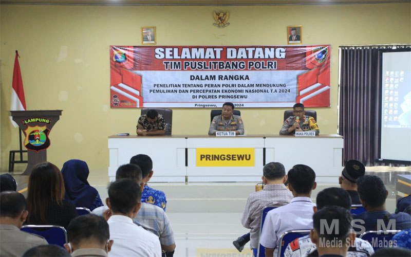 MSM TV, Pringsewu – Kepolisian Resor Pringsewu menerima menerima kunjungan kerja tim Penelitian Puslitbang Polri dalam Rangka melakukan Penelitian “Peran Polri dalam Mendukung Pemulihan dan Percepatan Ekonomi Nasional” di aula Mapolres setempat pada Rabu (3/4/2024).