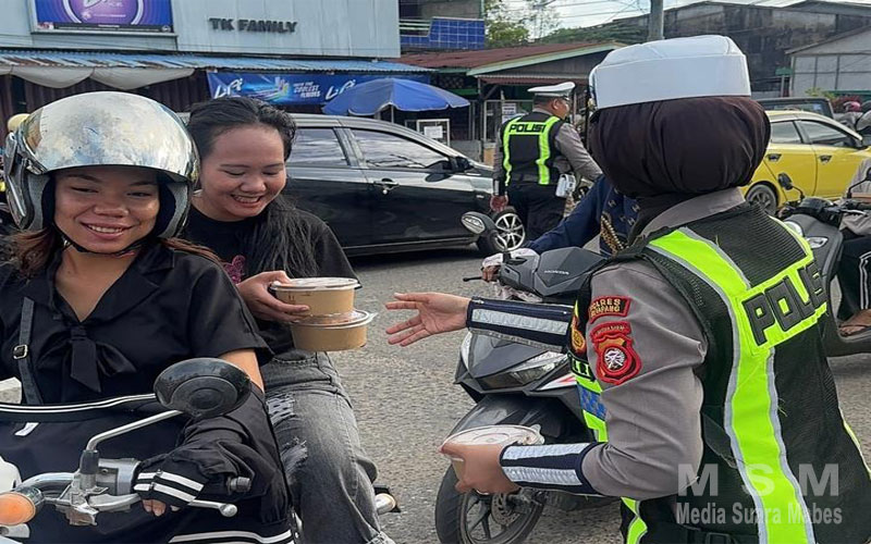 Selain membagikan takjil, petugas juga mengimbau para pengendara untuk tetap tertib berlalu lintas, menggunakan helm bagi pengendara sepeda motor, serta selalu mematuhi rambu-rambu lalu lintas demi keselamatan bersama.