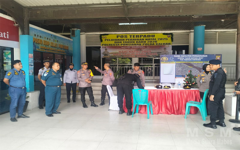 MediaSuaraMabes, Pontianak Kalbar – Memasuki H-2 perayaan Natal 2025, Personel Binmas Polda Kalimantan Barat yang tergabung dalam Satgas Preemtif Operasi Lilin Kapuas 2025 mengintensifkan kegiatan Pembinaan dan Penyuluhan (Binluh) di sejumlah titik vital transportasi air di Kota Pontianak. (Selasa, 23/12/2025).
