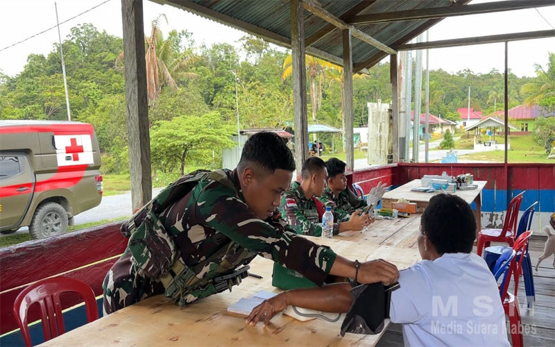 Satgas Yonif 763/SBA Berikan Pelayanan Kesehatan di Sekitar Pos Konja