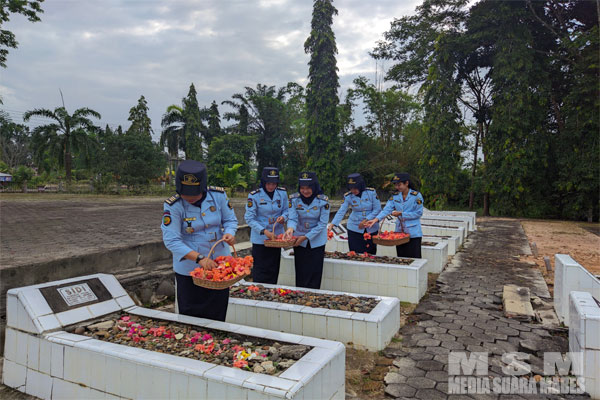 Kegiatan dilanjutkan dengan Seluruh Jajaran dan Anggota PIPAS Rutan Prabumulih melaksanakan tabur bunga di atas makam para pahlawan.