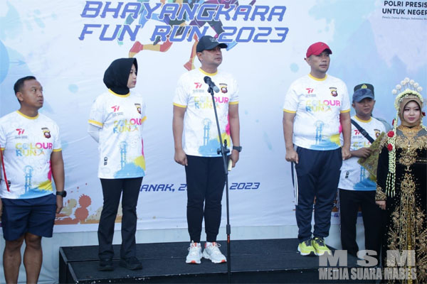 MSM TV, Pontianak Kalbar – Kapolda Kalbar Irjen Pol Pipit Rismanto, S.I.K., M.H., didampingi ibu ketua Bhayangkari Daerah Kalbar Ny. Nila Pipit Rismanto, bersama Wakapolda Kalbar Brigjen Pol Asep Safrudin, S.I.K.,M.H., PJU Polda Kalbar, Kapolres/ta Jajaran Polda Kalbar dan masyarakat umum melaksanakan Fun Run dalam rangka peringatan Ke-77 Hari Bhayangkara Tahun 2023 pada hari Minggu (25/6).