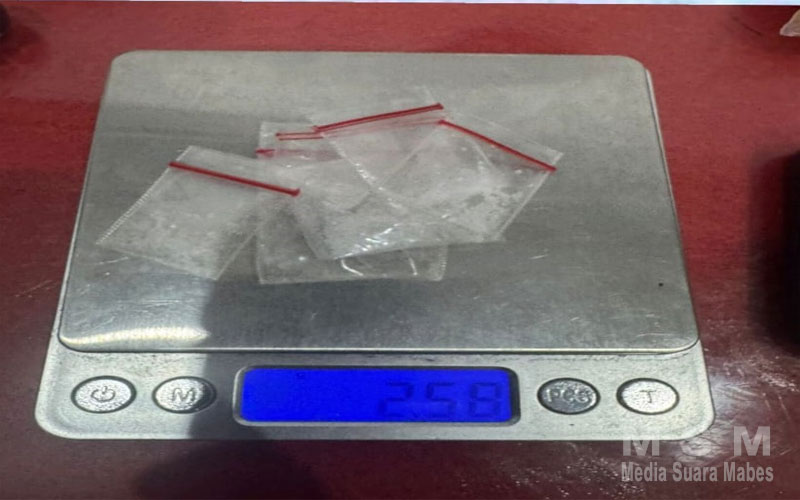 “ Dari tangan terduga pelaku, kami mengamankan 5 plastik kilp berisikan serbuk kristal yang diduga sabu dengan berat total 2,58 gram brutto, beserta perangkat lainnya ” ujar Kapolsek saat dikonfirmasi.