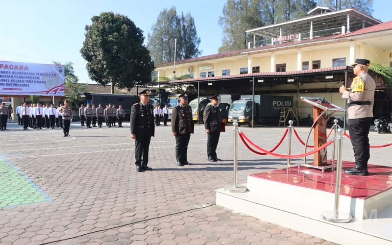 Dalam amanatnya, Kapolres Tanah Karo AKBP Pebriandi Haloho menegaskan bahwa tanda kehormatan dan penghargaan bukan sekadar seremoni.