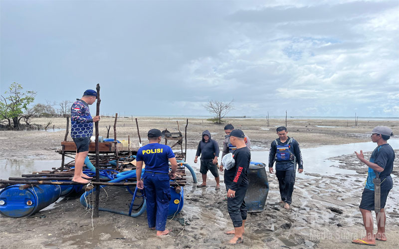 Tim Gabungan Polres Belitung Tertibkan Tambang Timah Ilegal Di Perairan Laut Dusun Ulim Membalong