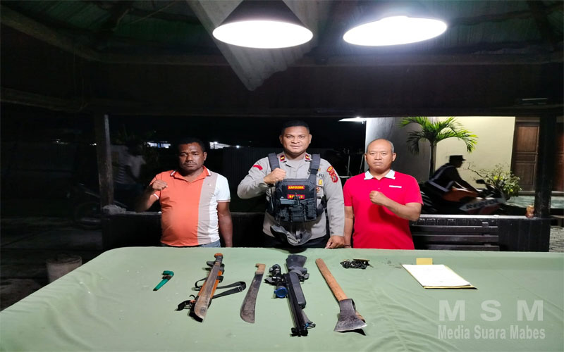 Dari hasil Razia tersebut didapati 5 buah senjata tajam yang terdiri dari 2 ( dua ) Buah Parang, 1 ( satu )Buah Kampak, 1 ( satu ) Buah Badik, 1 ( satu ) Buah Senapan angin.
